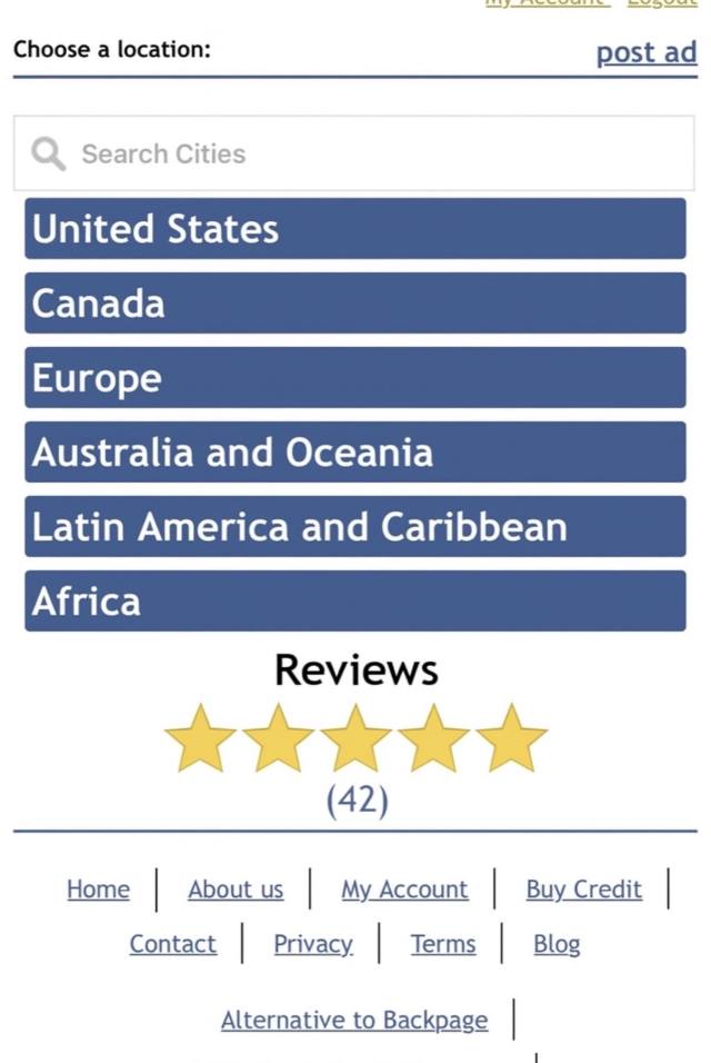 Home | About us | My Account | Buy Credit | Contact | Privacy | Terms | Blog | Alternative to Backpage | Website similar to Backpage | Best sites like Backpage | Backpage replacement